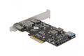 Die PCIe Karte bietet drei USB-C™ Port sowie zwei USB Typ-A Ports. Somit lassen sich Geräte an jedem Anschluss mit 10 Gbps verbinden.