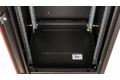 Die Schränke der Basic Flex Line wurden für die effiziente und benutzerfreundliche Installation von aktiven und passiven Netzwerkkomponenten entwickelt, wobei der Schwerpunkt auf einem rationellen Kabelmanagement liegt. Hergestellt aus bis zu 1,5 mm starkem Stahlblech, garantiert jeder Schrank eine hervorragende Stabilität durch eine einzigartige, die einen robusten Stahlrahmen bildet. Sie sind pulverbeschichtet in Grau (RAL 7035) oder Schwarz (RAL 9005)erhältlich. Für schwer zugängliche Aufstellorte ist der Schrank zerlegbar ausgeführt. Die Türen sind leicht abnehmbar und die Türanschläge können zwischen Rechts- und Linksanschlag umgeschaltet werden. Außerdem ist das Dach für den Einbau einer Lüftungseinheit vorbereitet. In jedem Schrank befinden sich zwei Sätze (4 Stück) 483-mm-Profilschienen (19"). Diese verzinkten und mit beidseitig ablesbaren Höheneinheiten versehenen Schienen sind in der Tiefe verstellbar. Um den Einbau von großvolumigen Geräten zu erleichtern, werden sie mit zusätzlichen Tiefenstreben kombiniert. Das Kabelmanagement ist ein zentraler Bestandteil des Designs. Der Schrankboden verfügt über eine ausgestanzte Kabeleinführung, die mit einer Metallplatte abgeschirmt ist. Für die breiteren 800 mm Schränke gibt es zusätzlich ausgestanzte Kabeleinführungen, die beidseitig mit Kunststoff abgedeckt sind. Diese Kabeleinführungen befinden sich auch auf dem Dach, wobei bei den 600 mm breiten Schränken nur eine und bei den 800 mm breiten Schränken drei Kabeleinführungen gibt. Um den unterschiedlichen betrieblichen Anforderungen gerecht zu werden, ist ein umfangreiches Zubehörprogramm mit Kabelführungswerkzeugen und Fachböden erhältlich.