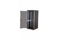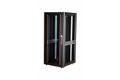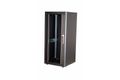 Die Schränke der Basic Flex Line wurden für die effiziente und benutzerfreundliche Installation von aktiven und passiven Netzwerkkomponenten entwickelt, wobei der Schwerpunkt auf einem rationellen Kabelmanagement liegt. Hergestellt aus bis zu 1,5 mm starkem Stahlblech, garantiert jeder Schrank eine hervorragende Stabilität durch eine einzigartige, die einen robusten Stahlrahmen bildet. Sie sind pulverbeschichtet in Grau (RAL 7035) oder Schwarz (RAL 9005)erhältlich. Für schwer zugängliche Aufstellorte ist der Schrank zerlegbar ausgeführt. Die Türen sind leicht abnehmbar und die Türanschläge können zwischen Rechts- und Linksanschlag umgeschaltet werden. Außerdem ist das Dach für den Einbau einer Lüftungseinheit vorbereitet. In jedem Schrank befinden sich zwei Sätze (4 Stück) 483-mm-Profilschienen (19"). Diese verzinkten und mit beidseitig ablesbaren Höheneinheiten versehenen Schienen sind in der Tiefe verstellbar. Um den Einbau von großvolumigen Geräten zu erleichtern, werden sie mit zusätzlichen Tiefenstreben kombiniert. Das Kabelmanagement ist ein zentraler Bestandteil des Designs. Der Schrankboden verfügt über eine ausgestanzte Kabeleinführung, die mit einer Metallplatte abgeschirmt ist. Für die breiteren 800 mm Schränke gibt es zusätzlich ausgestanzte Kabeleinführungen, die beidseitig mit Kunststoff abgedeckt sind. Diese Kabeleinführungen befinden sich auch auf dem Dach, wobei bei den 600 mm breiten Schränken nur eine und bei den 800 mm breiten Schränken drei Kabeleinführungen gibt. Um den unterschiedlichen betrieblichen Anforderungen gerecht zu werden, ist ein umfangreiches Zubehörprogramm mit Kabelführungswerkzeugen und Fachböden erhältlich.