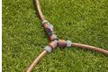 Durch das Original GARDENA System kann auch ein Regner an die Kupplung mit Regulierventil angeschlossen und dann die Reichweite der Bewässerung durch die Regulierung des Wasserdurchflusses eingestellt werden.