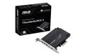 ASUS ThunderboltEX 5. Hostschnittstelle: PCIe, Ausgangsschnittstelle: Mini DisplayPort, PCIe, USB 2.0, Erweiterungskarte Standard: PCIe 4.0. Produktfarbe: Mehrfarbig, Zweck: PC. Chipsatz: Intel JHL9580 Thunderbolt 5 Controller, Datenübertragungsrate (max): 120 Gbit/s. Unterstützt Windows-Betriebssysteme: Windows 11 x64. Breite: 88,9 mm, Tiefe: 119,5 mm