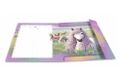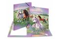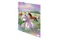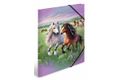 Die Sammelmappe "Pferdewelt" entführt in eine zauberhaft schöne Landschaft, die die Herzen von Pferdefans höher schlagen lässt. Die liebevollen Zeichnungen zeigen verspielte Pferde mit wallenden Mähnen, in die Zöpfe, Perlen und bunte Bänder eingeflochten sind. Auf einer blühenden Wiese tummeln sich mehrere dieser schönen Tiere, umgeben von lila Blumen, die dem Bild eine romantische Note verleihen. Der sanfte, zartlila Himmel schafft eine harmonische Atmosphäre und lädt zum Träumen ein. Diese Sammelmappe für das Format DIN A3 vereint Funktionalität mit einem ansprechenden Design und ist ideal für die Aufbewahrung von Schulunterlagen, kreativen Projekten oder persönlichen Erinnerungen. Die liebevolle Gestaltung strahlt Unbeschwertheit aus und vermittelt das Gefühl von Freiheit und Ruhe. Die Sammelmappe "Pferdewelt" bringt Freude in den Alltag und ist perfekt für alle, die die ländliche Idylle und die Liebe zu Pferden schätzen. Ein stilvolles Accessoire für kleine und große Pferdefans, das die Leidenschaft für diese fantastischen Tiere auf besondere Weise festhält.