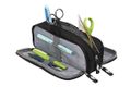 WEDO® Mäppchen mit 3 Fächern: Das praktische Business Schlampermäppchen mit 3 Reißverschlussfächern für alles, was mit muss. Ins geräumige Innenfach in der Mitte passen locker die wichtigsten Stifte und ein Standard-Geodreieck. 7 Stiftschlaufen auf der einen, sowie 2 Kartenfächer und zwei Netzfachtaschen auf der anderen Seite, machen aus diesem Modell ein Stauraumwunder für alle wichtigen Schul- oder Uniutensilien. Außenmaterial: pflegeleichtes Polyester in schwarz = Modell Business. Gefüttert mit abwischbarem Polyesterfutter in grau. Die stabilen Reißverschlüsse und Zipper sind in der Mäppchenfarbe gehalten. Zum Mäppchen gibt es eine passende Schreib- und Collegemappen sowie einen passenden Notebook-Rucksack. Maße:23 x 7,5 x 8,5 cm, Lieferung mit Hangtag.