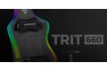Die Grundlagen des Trit 660 RGB sind ein robuster Metallrahmen für absolute Stabilität und "atmungsaktives" Gewebe, das im Gegensatz zu billigem Öko-Leder nicht reißt und thermischen Komfort bietet. Außerdem haben wir verformungsresistenten Schaumstoff verwendet, der deine Langlebigkeit über Jahre hinweg gewährleistet. Bei der Entwicklung des Sitzes wurde auf Stabilität und Halt geachtet, deshalb haben wir starke Gurte verwendet, um den Schaumstoff zu stützen.