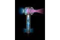 Dyson Supersonic. Luftstrom: 13,3 l/s, Temperatur (max): 100 °C. Produktfarbe: Blau, Kupfer, Kabellänge: 2,62 m, Steuerung: Tasten, Schieber. Leistung: 1600 W, AC Eingangsspannung: 220 - 240 V. Garantiezeit: 2 Jahr(e). Breite: 97,8 mm, Tiefe: 288,3 mm, Höhe: 77 mm